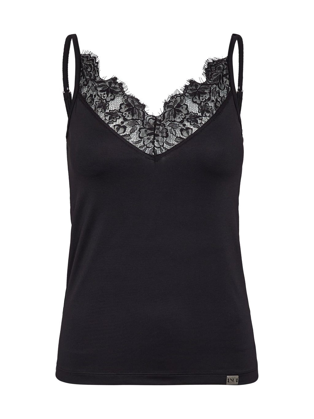 This beautiful top is made of an incredibly soft, smooth, and stretchy quality. The top features thin, adjustable straps and a lovely lace trim at the neckline. It can be worn on its own or under a shirt for a delicate lace detail. For a stylish look, consider styling this top with the HALINA shirt and HOLLY pants.