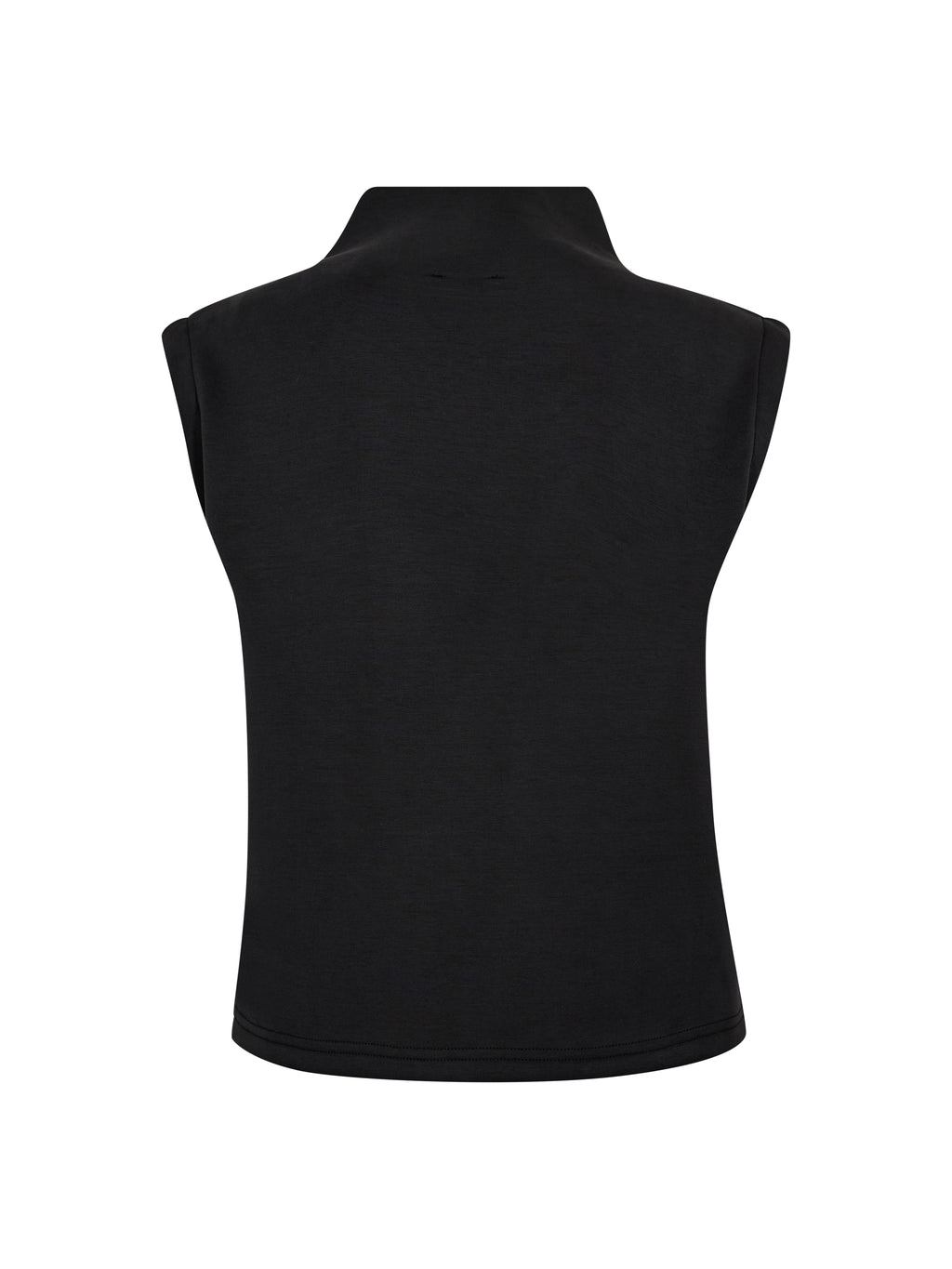 This top has a simple expression with a straight fit and high neckline. The front is calm, while the subtle band details at the shoulder add some structure and a graphic twist. The back is completely plain and keeps the expression clean. Style the top with the jacket and pants from the Cyra series for a cool, coordinated set, or pair it with trousers or shorts for a casual but neat everyday look.