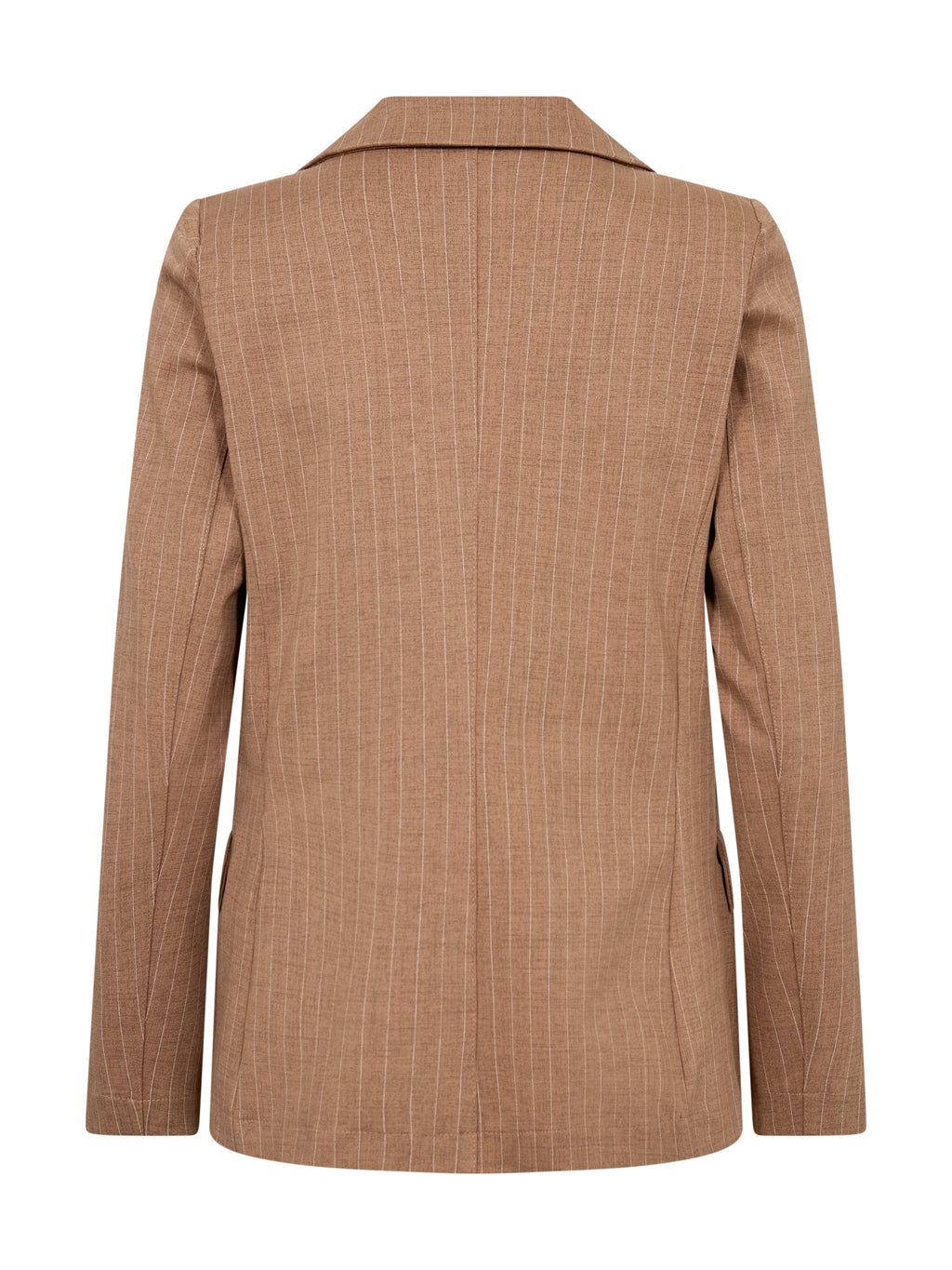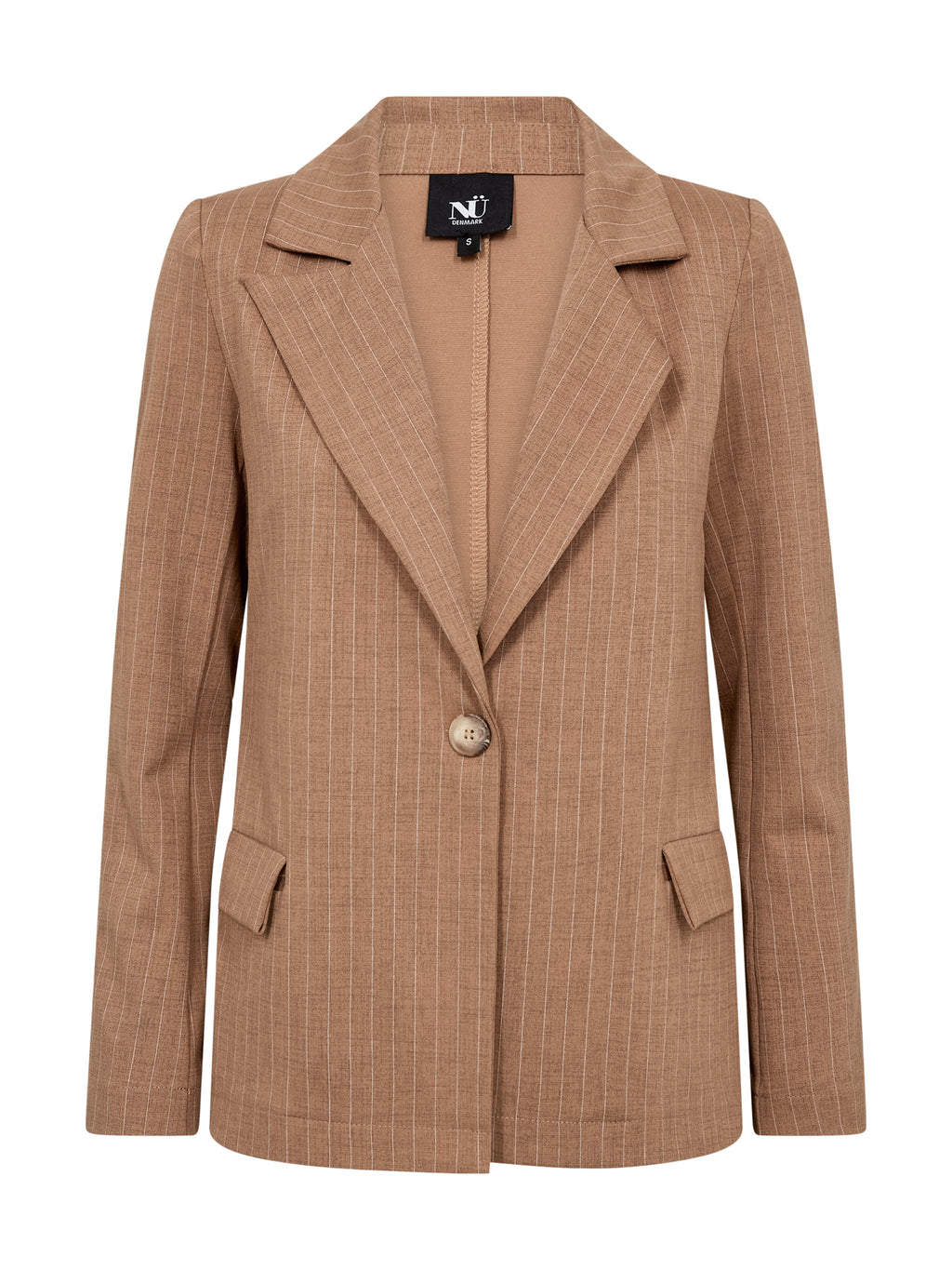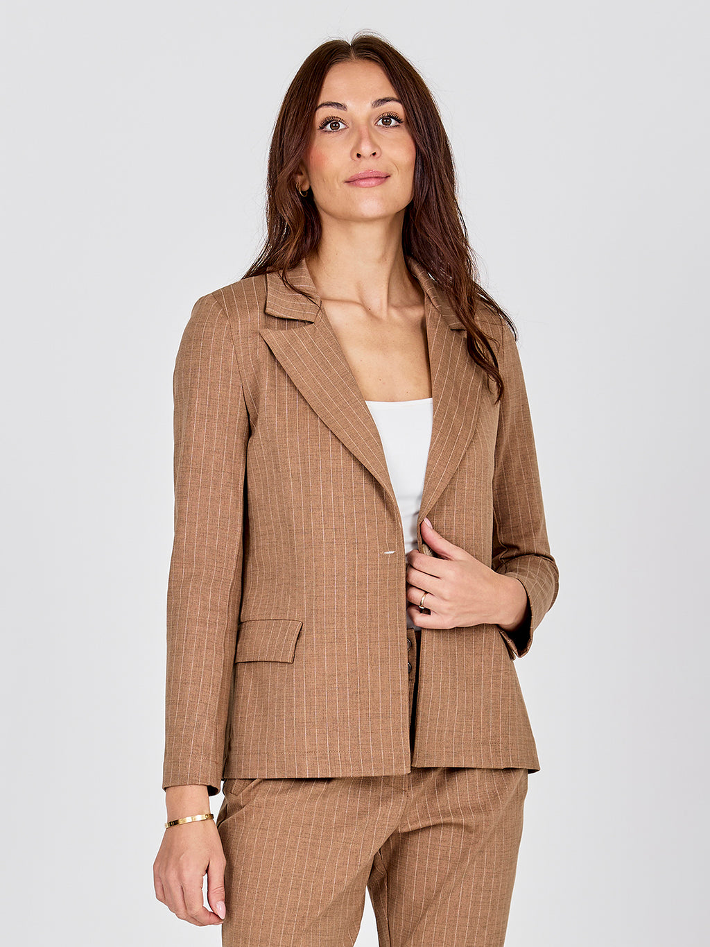 Elevate your everyday look with this sleek blazer, combining classic details with a modern cut. It features a single front button fastening, pointed lapels, and two flap front pockets that complete the elegant expression. The subtle, vertical pattern adds a refined touch to the blazer, and the lightly structured quality adds comfort.