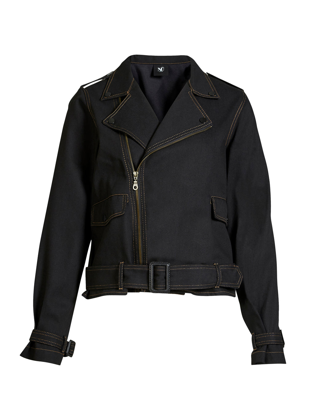 Add edge to the wardrobe with this denim jacket in a biker-inspired design. It features an asymmetrical zipper, a belt at the waist, and detailed stitching that provides structure and a cool expression. Shoulder straps and adjustable straps at the sleeves complete the raw look, while the material offers durability and comfort.