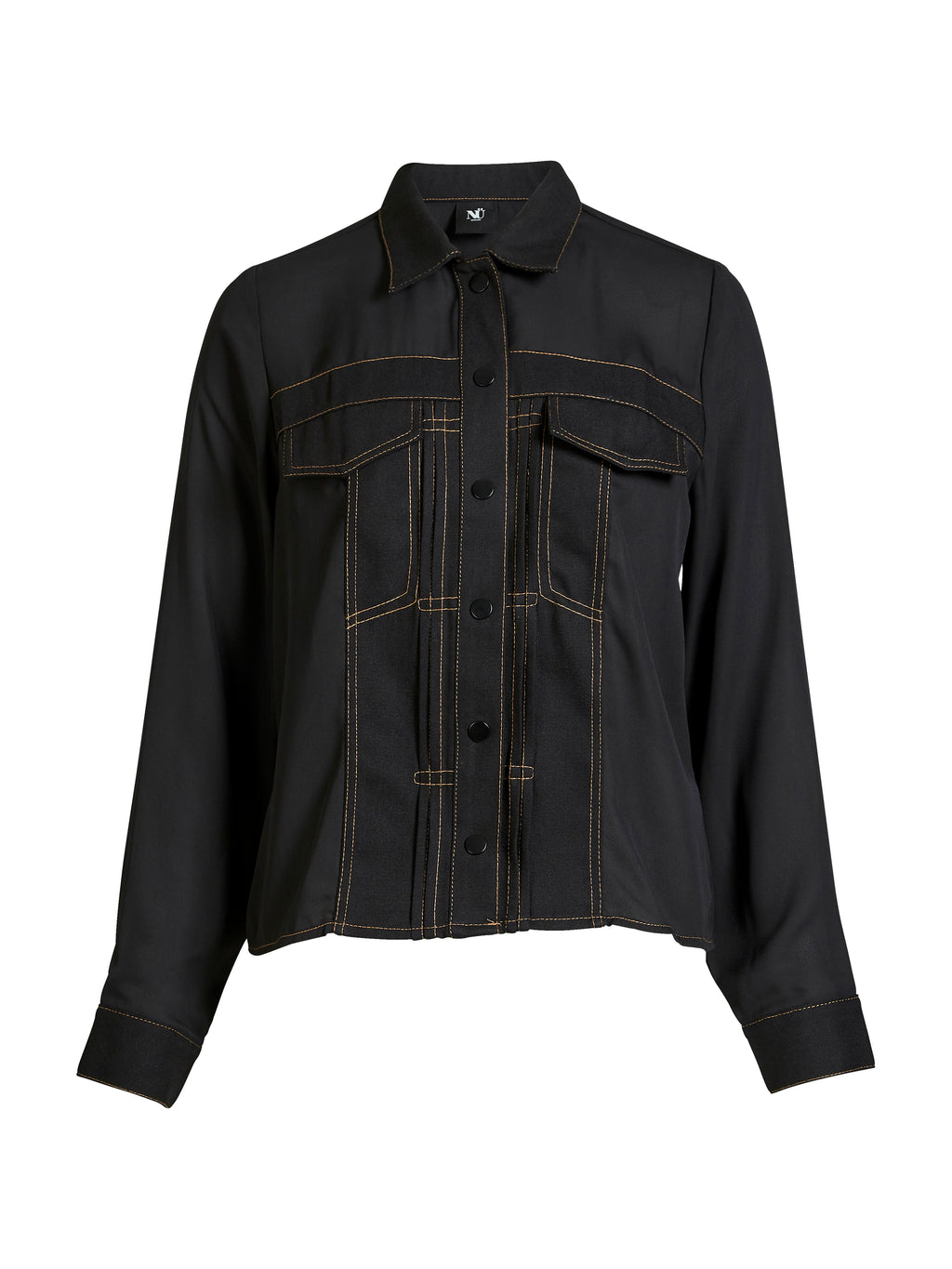 Style the shirt open over a top and matching pants for a coordinated look, or closed with flat shoes for a relaxed everyday outfit.