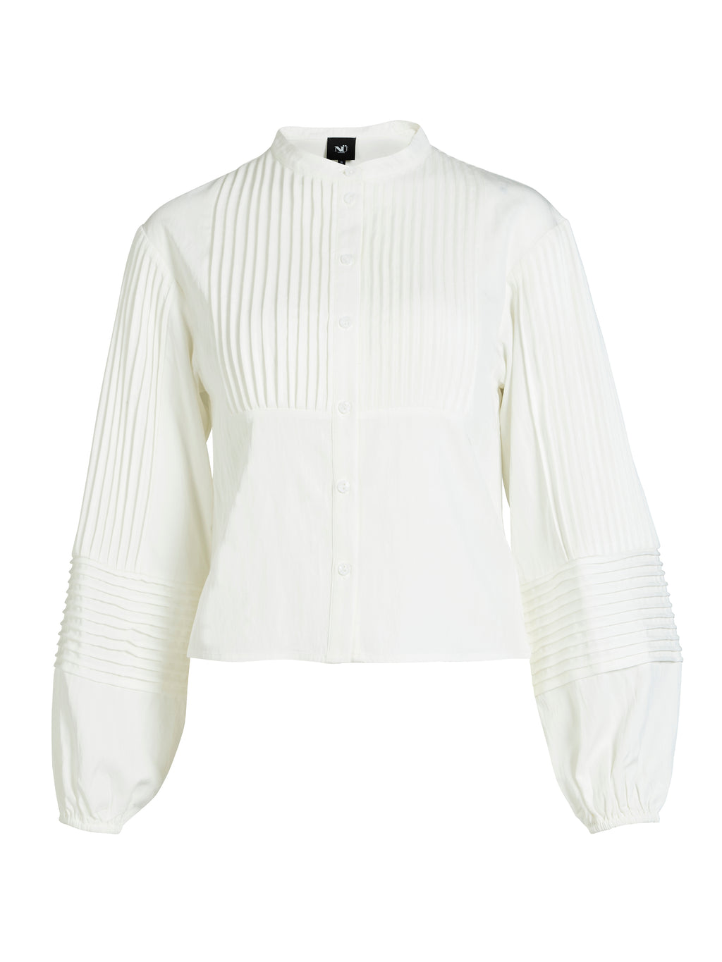 Add an elegant and modern element to the wardrobe with this shirt, which combines classic cut with decorative pleats. The vertical pleats on the front and sleeves provide structure and an exclusive expression, while the slightly puffed sleeves with elastic at the bottom add a soft counterpoint to the shirt's sharp lines.