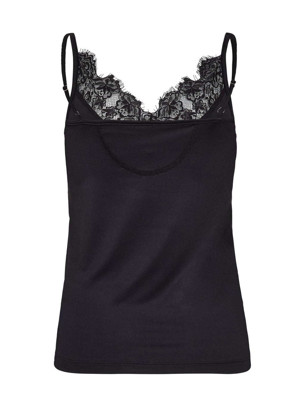 This beautiful top is made of an incredibly soft, smooth, and stretchy quality. The top features thin, adjustable straps and a lovely lace trim at the neckline. It can be worn on its own or under a shirt for a delicate lace detail. For a stylish look, consider styling this top with the HALINA shirt and HOLLY pants.