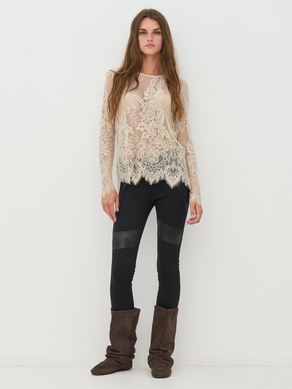 This lace blouse has a feminine and elegant look with transparent lace and a distinct floral pattern. The lightweight material adds depth to the look and works beautifully as a layer over a simple top. The edges are finished with a slight wavy edge, providing a neat and polished finish. The blouse is comfortable to wear and can be styled for both casual and more festive occasions - alone or under a blazer or knitwear.