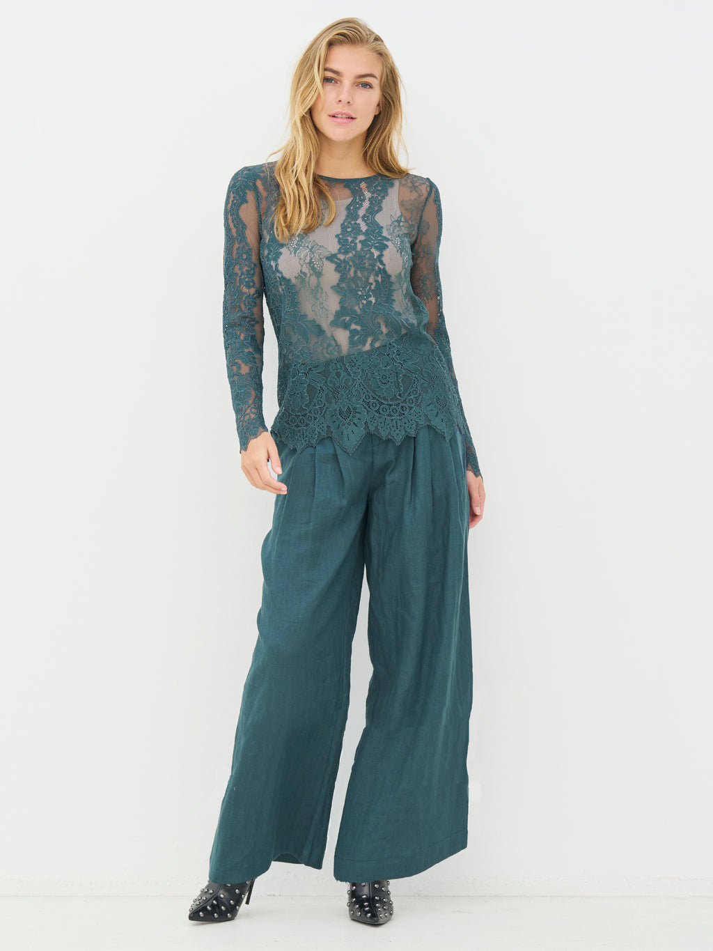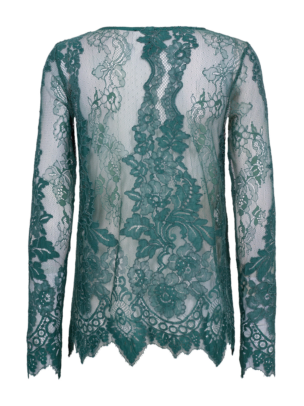 This lace blouse has a feminine and elegant look with transparent lace and a distinct floral pattern. The lightweight material adds depth to the look and works beautifully as a layer over a simple top. The edges are finished with a slight wavy edge, providing a neat and polished finish. The blouse is comfortable to wear and can be styled for both casual and more festive occasions - alone or under a blazer or knitwear.
