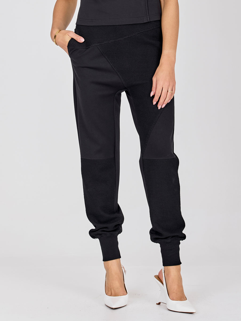 - Ribbed cuffs at the ankles