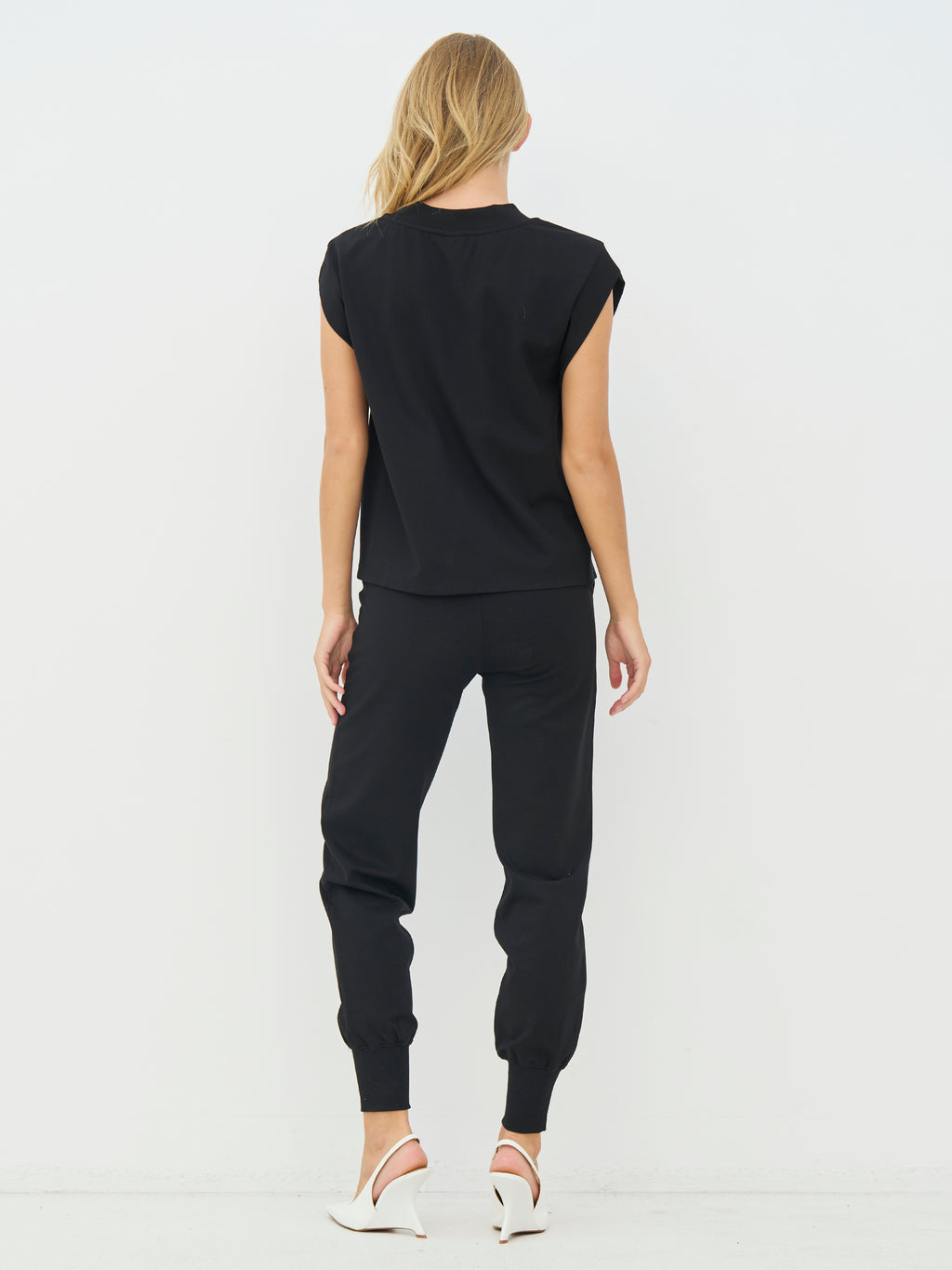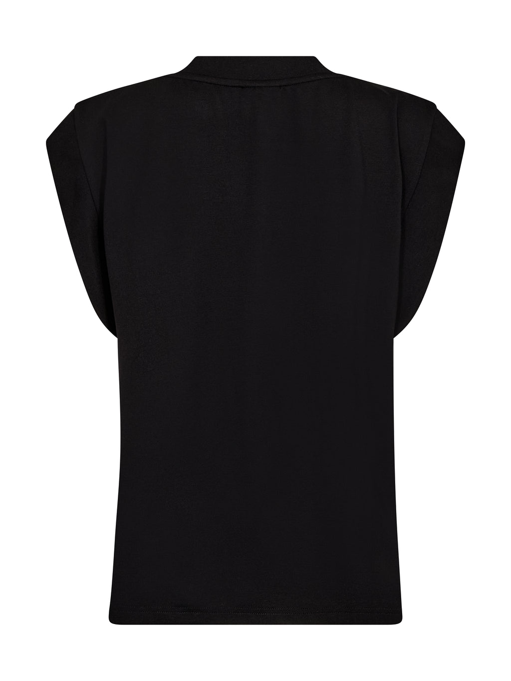 This blouse has a raw expression with a V-neckline and a straight fit. The shoulder details add edge and give the top a more distinctive look. The buckle on the shoulder serves as a decorative detail that adds character without dominating. The back is kept plain and creates balance in the design. Style the blouse with the matching trousers or skirt for a coordinated set, or wear it alone for a more casual everyday look.