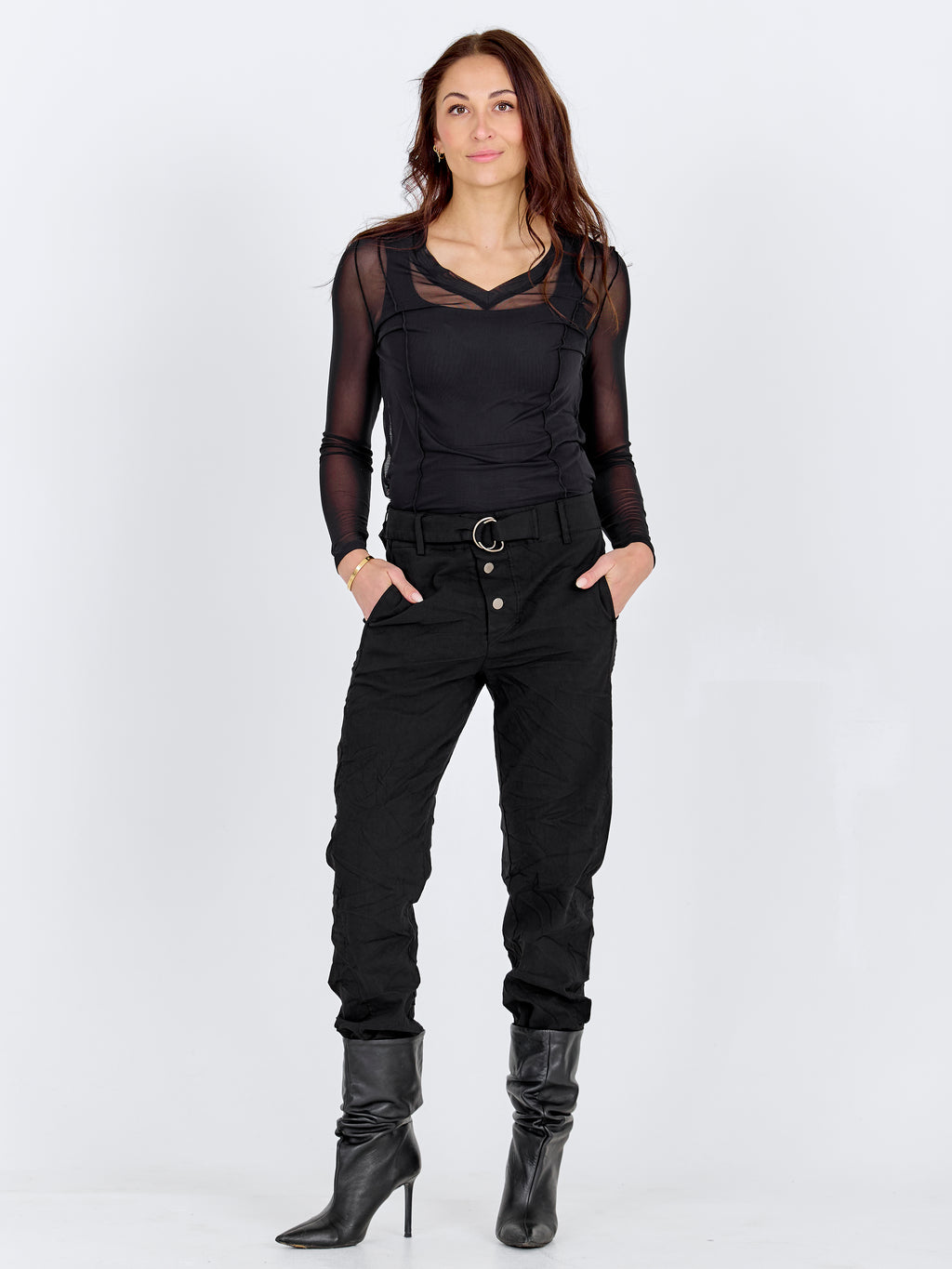 This mesh top has a clean and lightweight look with long sleeves and a V-neckline. The close-fitting silhouette follows the body, while the transparent material creates an airy and delicate expression. The blouse is simple both front and back, making it ideal for layering. Wear it under a blazer, knit or vest – or on its own over a top for a lighter, relaxed everyday look.