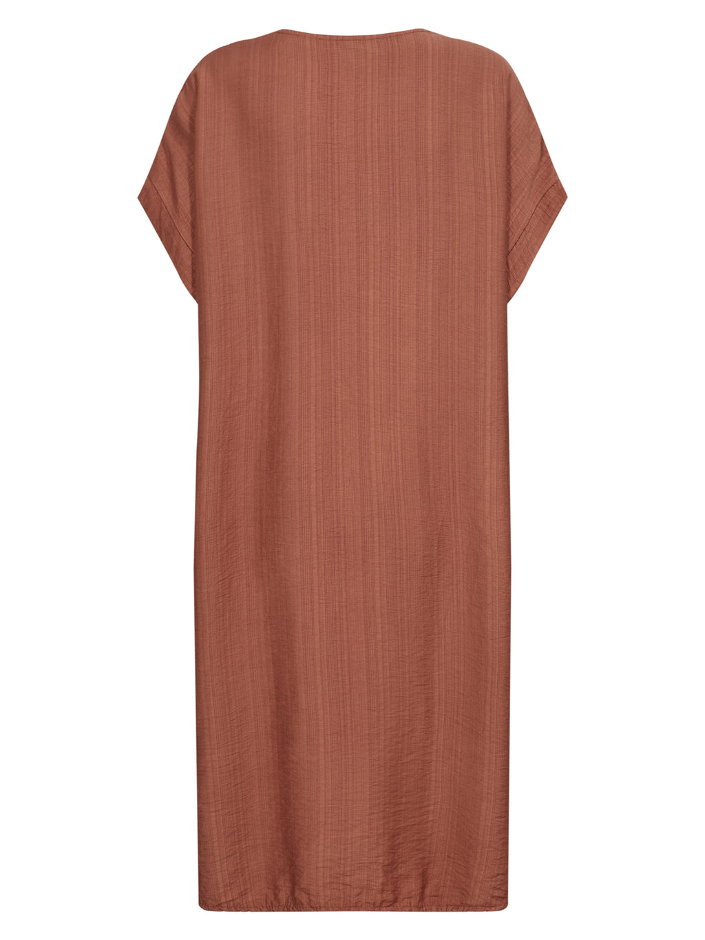 This tunic has a relaxed and simple look with a straight fit that softly drapes along the body. The elegant V-neck creates an open and airy appearance, while the short sleeves keep the silhouette simple and versatile. The length makes it comfortable to wear all day and easy to style, either on its own as a dress or with flat shoes and accessories for a more relaxed look.