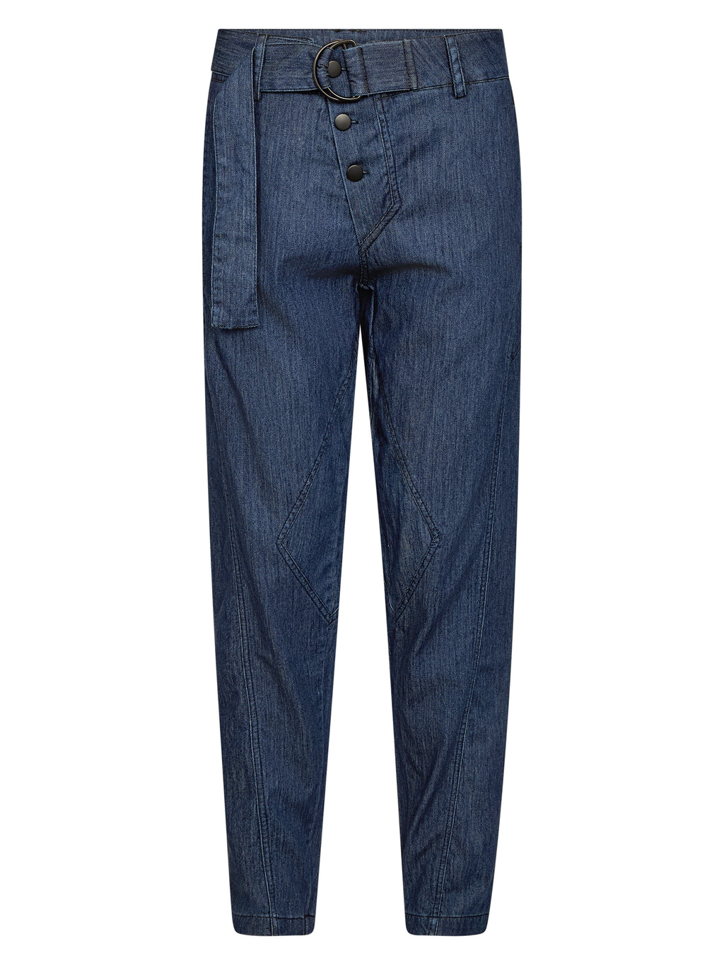 These denim trousers have a comfortable fit with plenty of stretch, making them easy to move around in all day. The integrated belt serves both a practical purpose and as a cool detail that adds some extra character to the trousers. A relaxed style that is easy to combine with soft knits, shirts, and T-shirts.